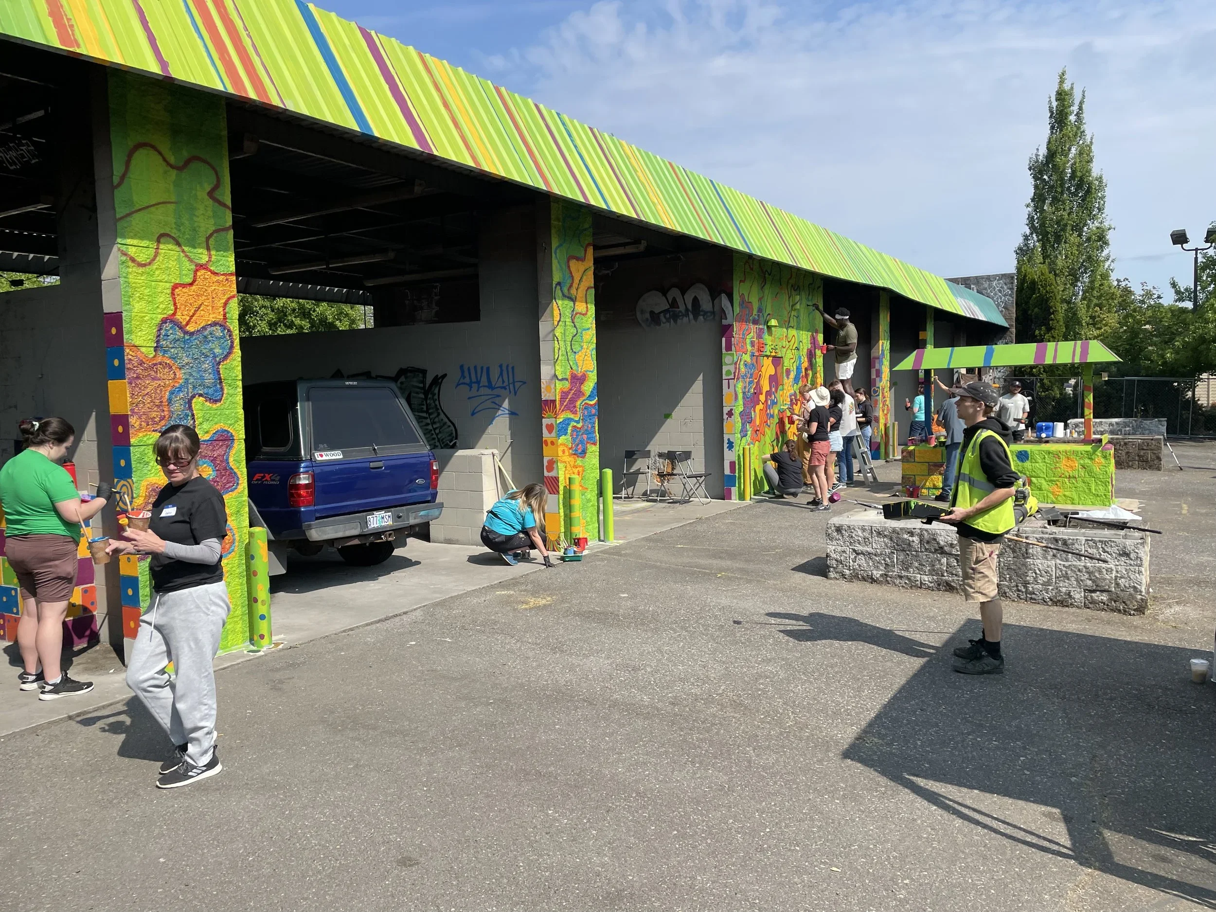 The community was invited to join the action! Sabin CDC (@sabincdc_pdx), a non-profit dedicated to promoting social equity by enhancing the livability of culturally diverse Portland neighborhoods, and property owner Killian Pacific (who commissioned the work) both hosted Community Paint Days - giving folks a chance to help get the colors down on the ground.