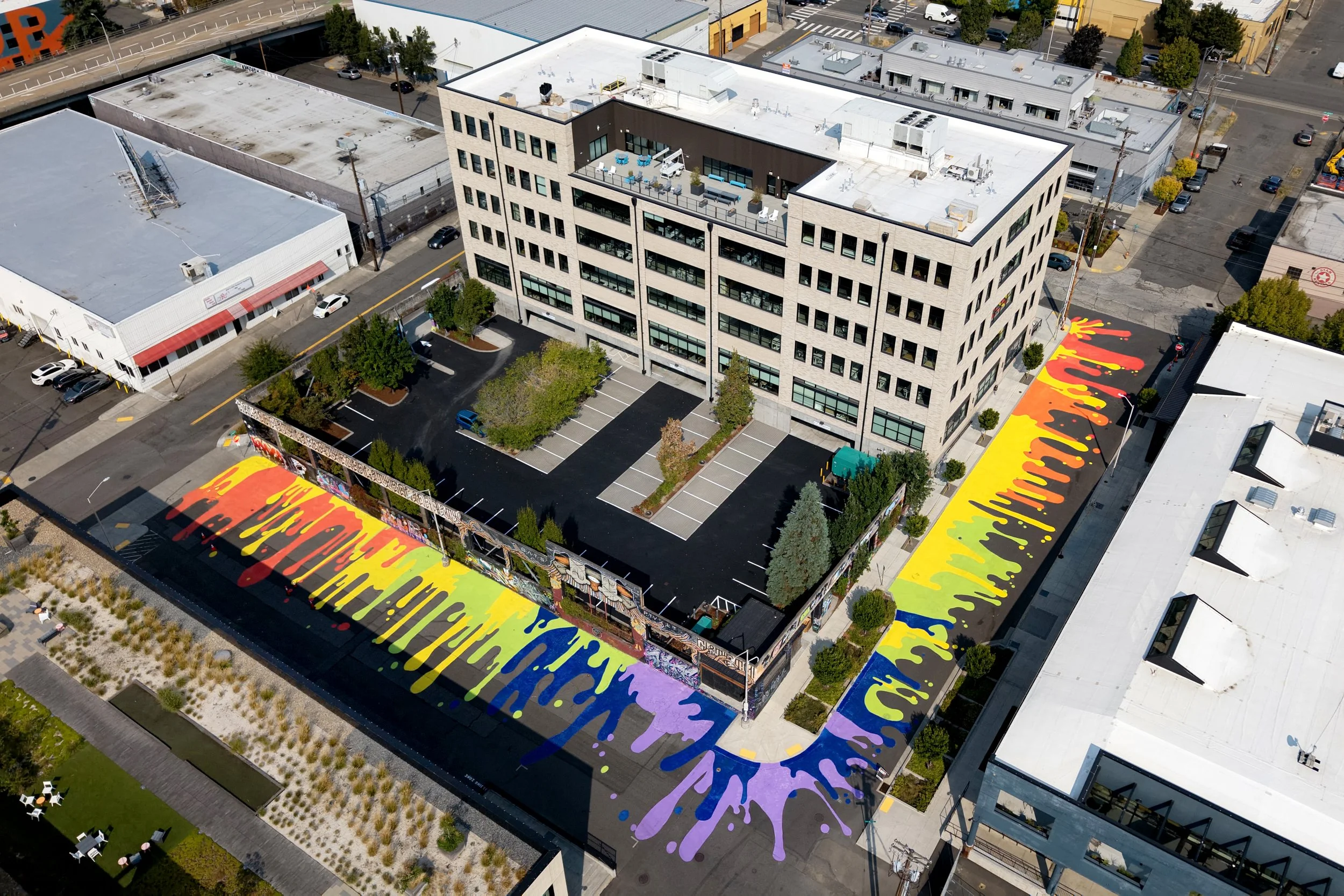 This creative placemaking project connects the iconic art-filled Nova Building with other buildings at the Electric Blocks campus. The Nova Building holds special significance in Portland’s street art history - carefully re-built to incorporate the graffiti-covered remnants of the old Taylor Electric Supply Company warehouse that was destroyed by a massive 4-alarm fire in 2006. For over a decade, the old ruins that once sat at this site became a Portland nexus of local, regional, and national graffiti art.